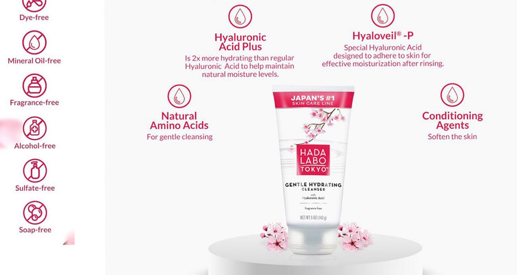 ژل شستشوی صورت هادالابو توکیو حاوی هیالورونیک اسید با خاصیت متعادل کننده پوست و مرطوب کنندگی Hada labo tokyo cleansing jel